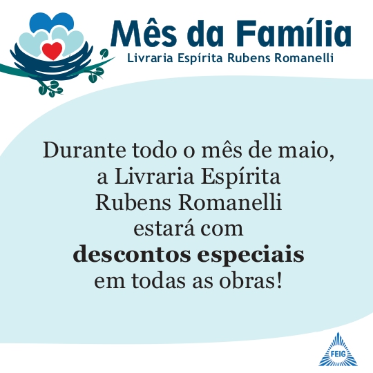 Entre os dias 01 e 31 de maio, a Livraria Espírita Rubens Romanelli estará com preços especiais em todas as obras.