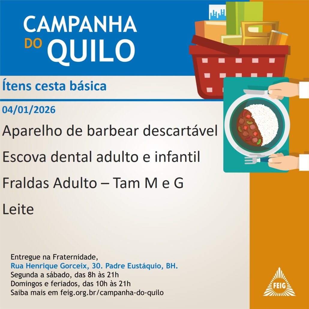 Na Feig, essa atividade foi iniciada logo após a fundação da casa, em 1976, e sempre garantiu o auxílio a diversas famílias em situação de vulnerabilidade social. Por meio da Campanha do Quilo eram e continuam sendo garantidos os itens que compõem as dezenas de cestas básicas distribuídas mensalmente.