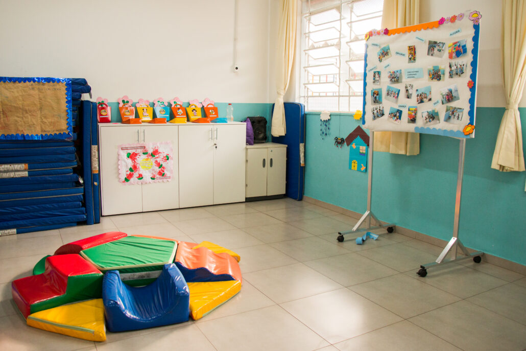 O novo projeto possui sete salas amplas com ricas propostas de atividades pedagógicas, área administrativa, cozinha equipada para a preparação de alimentos adequados às crianças, refeitório e banheiros. E ainda, 370 m² de área descoberta para o lazer das crianças, contando agora com um espaço para crianças de 1 ano.)