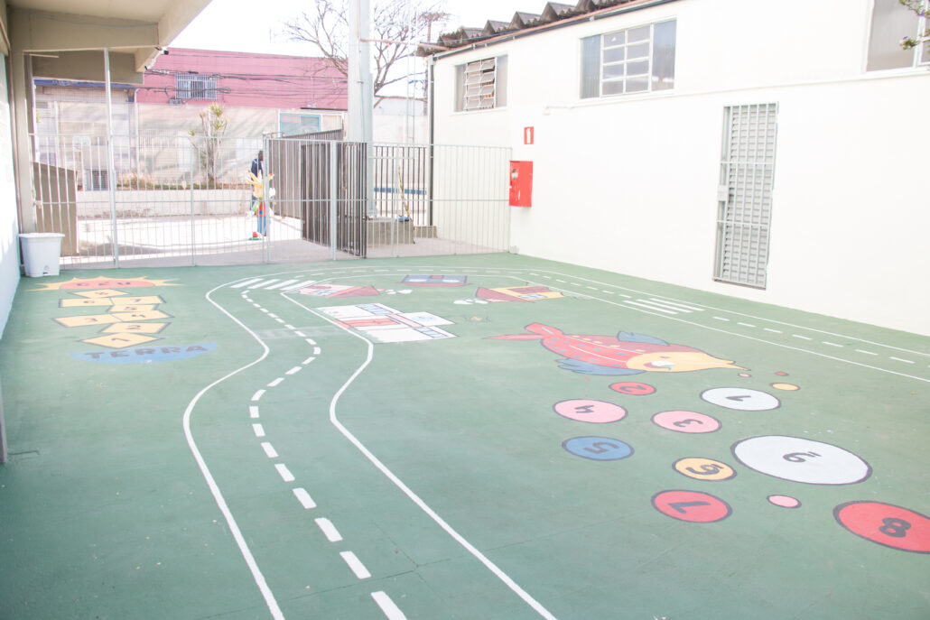O espaço externo do CEI José Grosso possui 370 m² de área descoberta para o lazer das crianças, com brinquedos como escorregadores, velotrois e desenhos e brincadeiras pintadas ao chão como amarelinha e muitas outras! Contamos também com um solário para os bebês da turma de 1 ano.